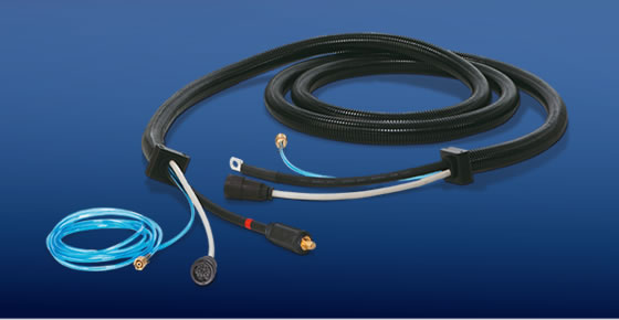 CLOOS furnizeaza pachete de furtunuri si cabluri de interconectare de inalta calitate cu lungimi de la 1 la 15 metri in varianta ondulata (vezi foto).Pachetele de furtunuri si cabluri de protectie in varianta cu teaca material ignifug pot ajunge la lungimi de pana la 40 de metri.